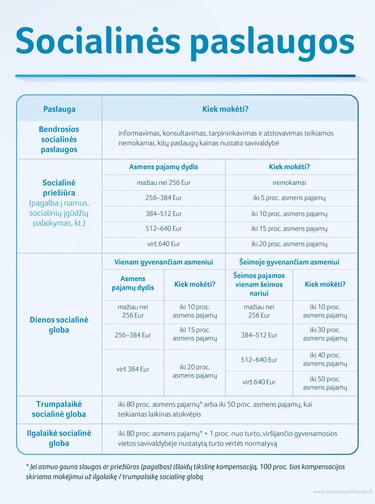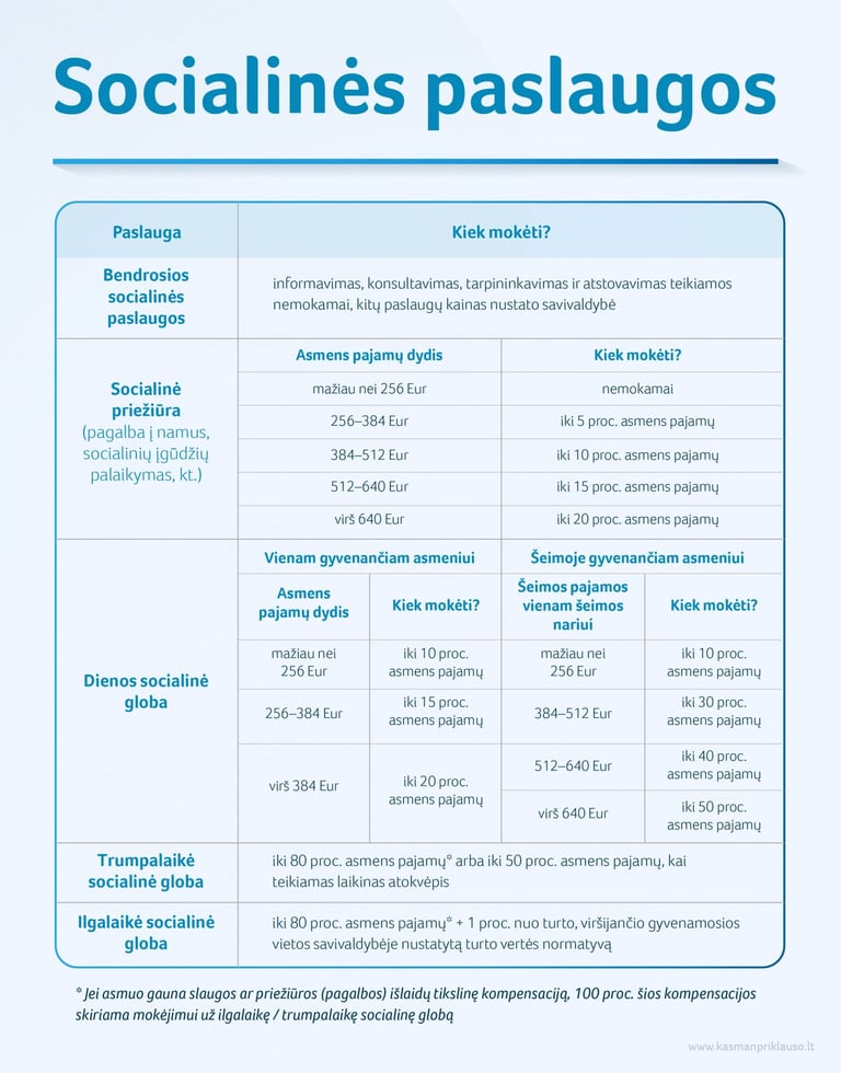 Apmokėjimas: Mokėjimo dydis nustatomas individualiai, atsižvelgiant į asmens gaunamas pajamas.